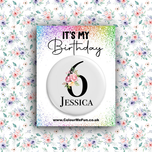 Personalised Floral Birthday Badge