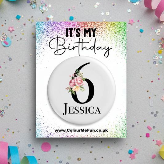 Personalised Floral Birthday Badge