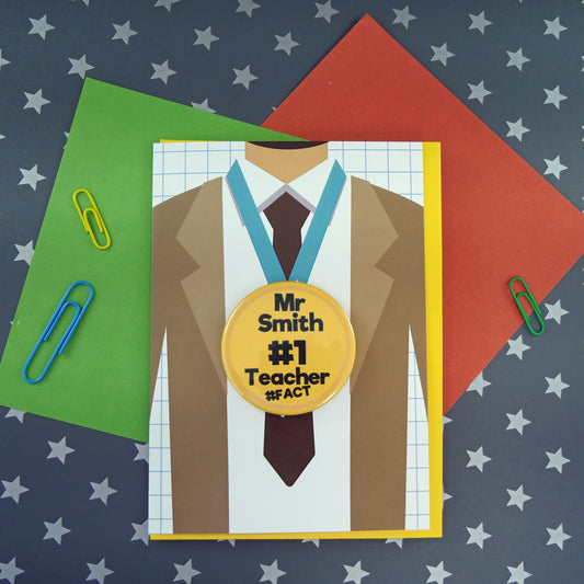 Personalised Teacher Card with Pin Badge