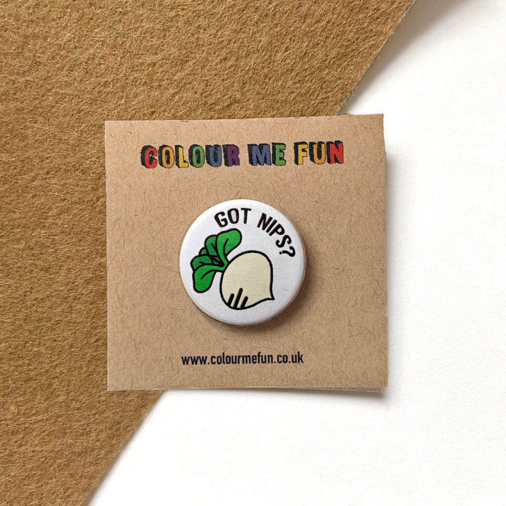 Animal Crossing "Got Nips?" Button Badge - an Animal Crossing charm.