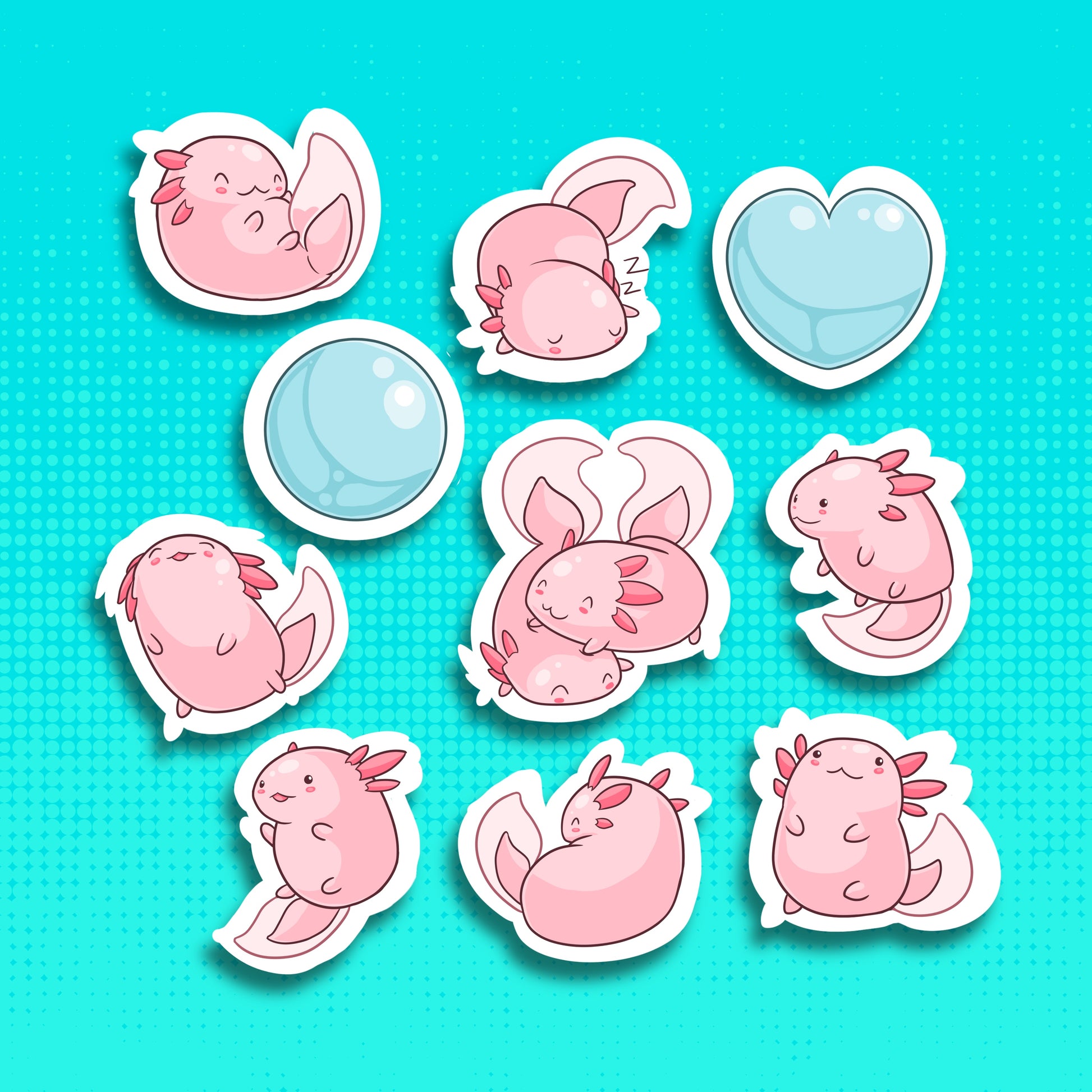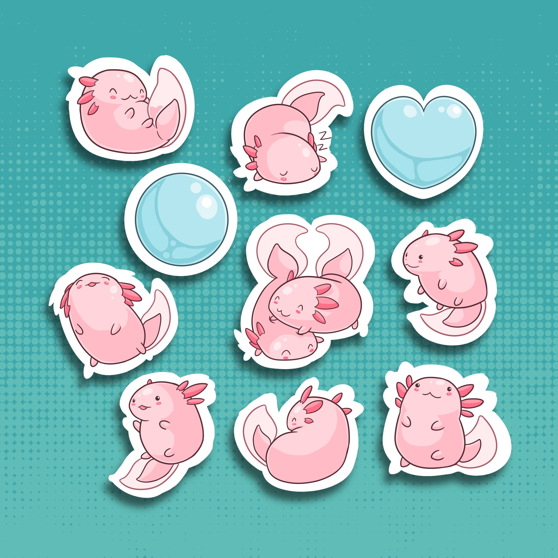 Kawaii axolotl sticker set - cute stickers, ideal for journaling and much more!