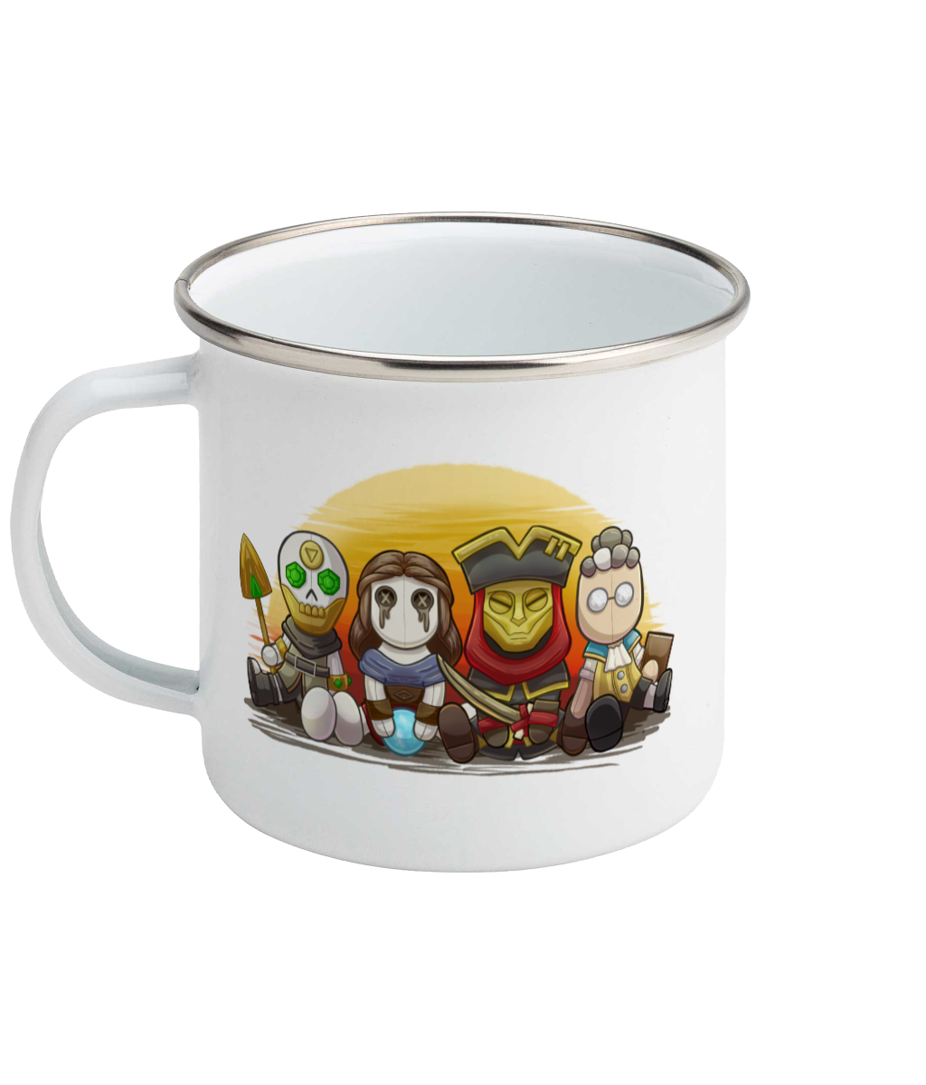 Embrace the spirit of adventure with this eye-catching 11oz white enamel mug featuring your favorite Sea of Thieves shipmates: the cunning Gold Hoarder, the mysterious Order of Souls, the daring Reaper, and the savvy Merchant. Gathered together against a breathtaking sunset, these legendary figures remind you that every great tale begins with camaraderie.