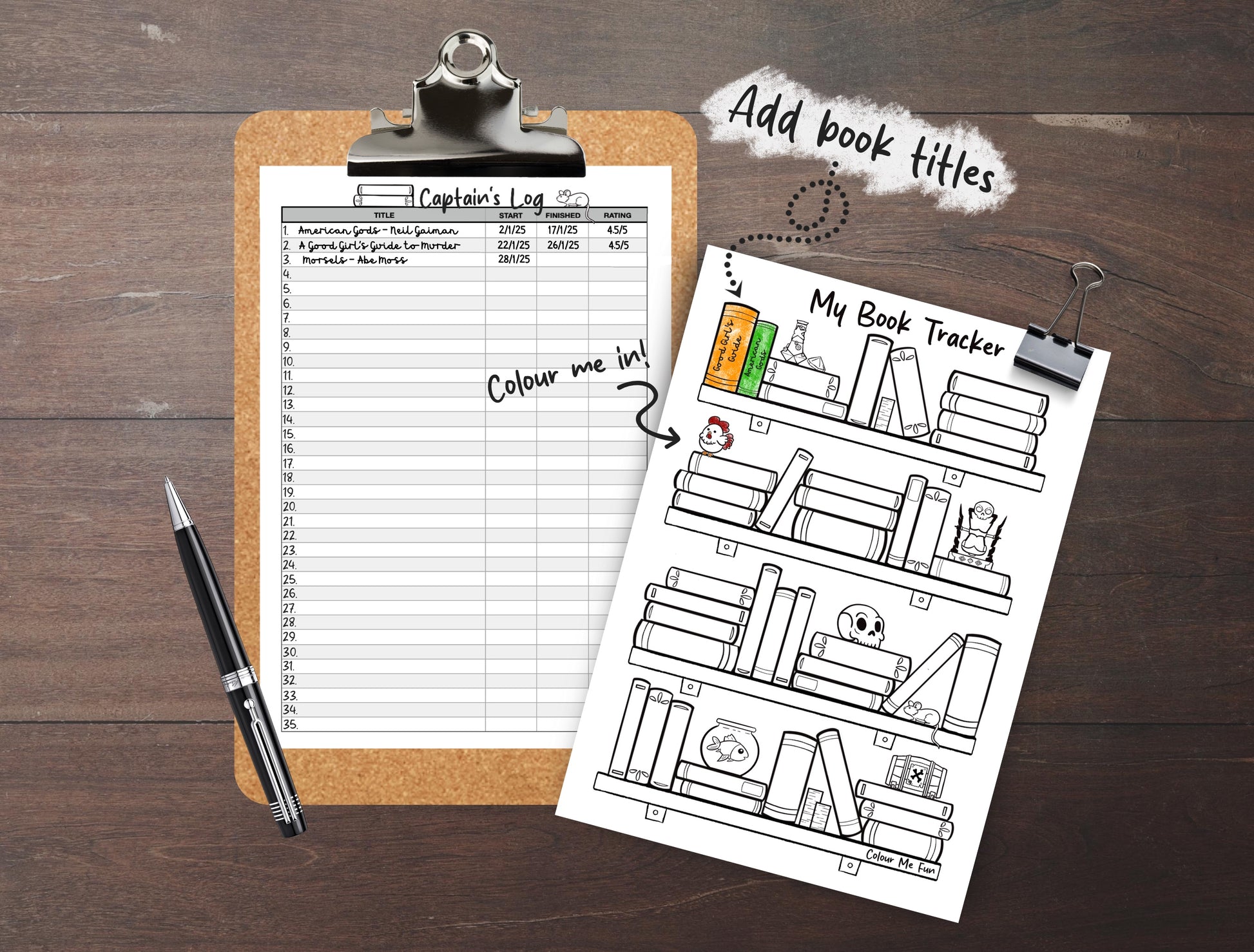 🧩 Bookshelf Tracker (A4 & A5 sizes): Colour/label in each book as you finish reading. Create a visual masterpiece of your reading journey.