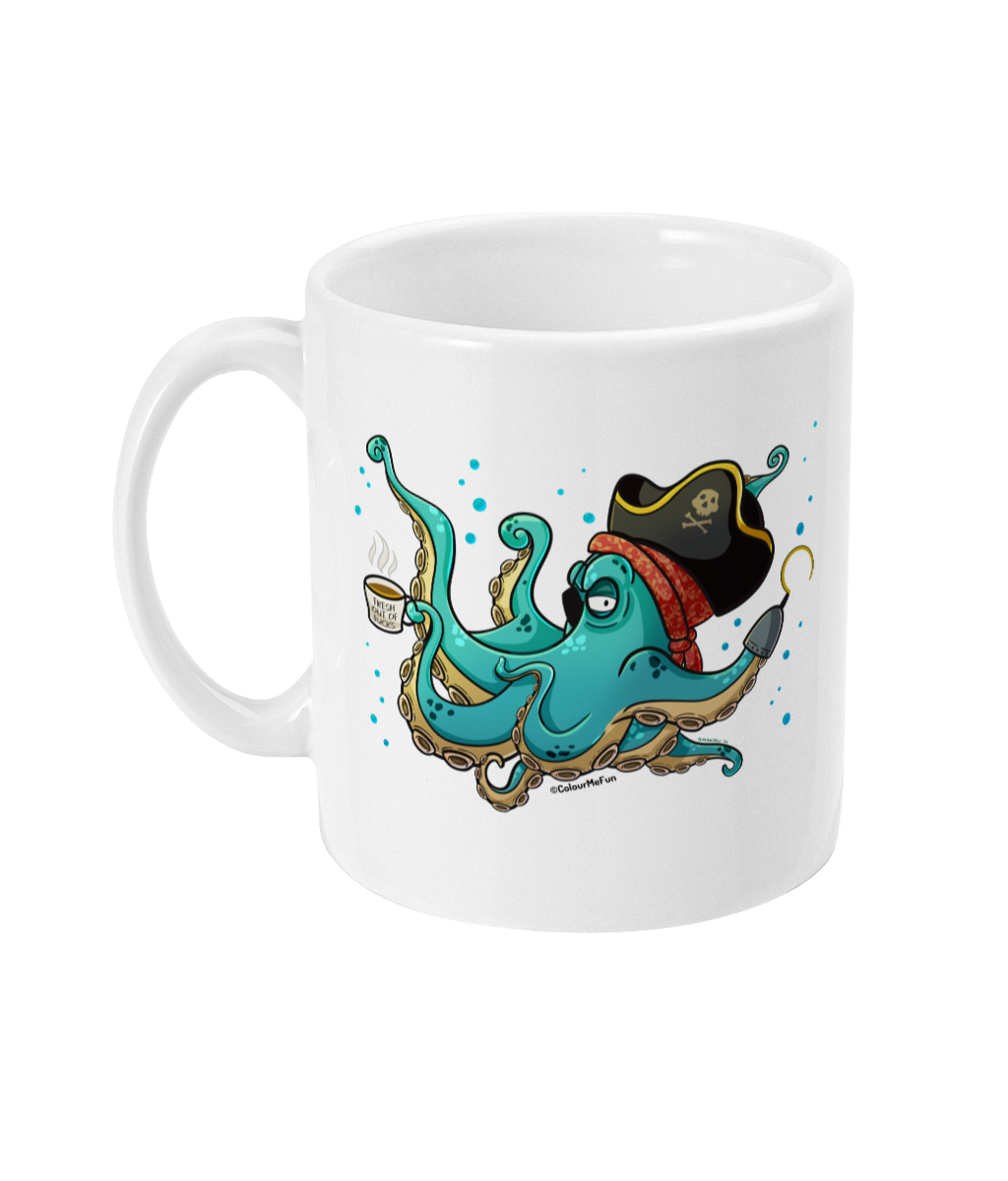 Unleash your inner sea beast with the Grumpy Kraken Ceramic Mug! This sassy 11oz white mug features the mighty kraken, but he's not just any sea monster—he’s sporting a pirate hat, rocking an eye patch, and serving up all kinds of attitude. Clutching his own mug that reads “Fresh Out of F**s”*, the kraken’s mood is clear: it's one of those days, and no amount of coffee will fix it!