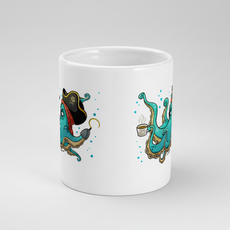 - Bold white ceramic with a fierce pirate kraken design