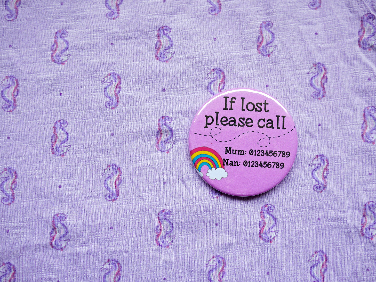 Child safety is always on our mind when you're out and about our button badges are perfect for putting on your little one's coat, jumper or t-shirt. A great alternative way of adding emergency contact details to an "if lost" item that your child can wear, which can be worn over and over again and again.