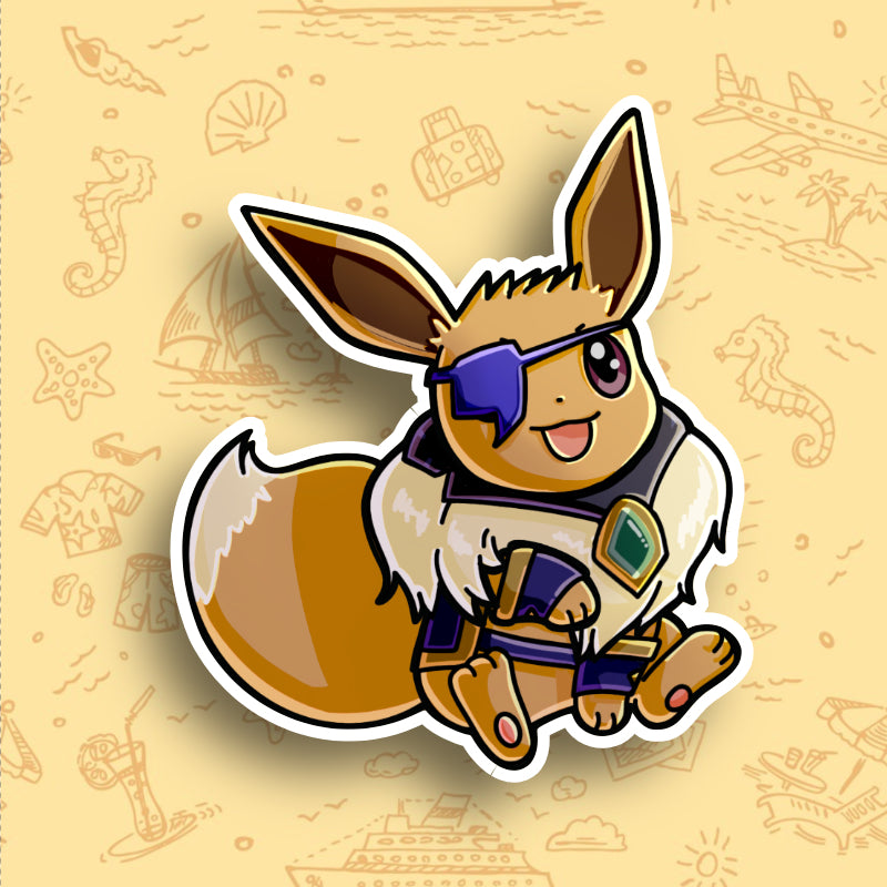 Combining my love of two amazing games to create a new world of Sea of Thieves pirates! This Eevee is a true legend of the seas!
