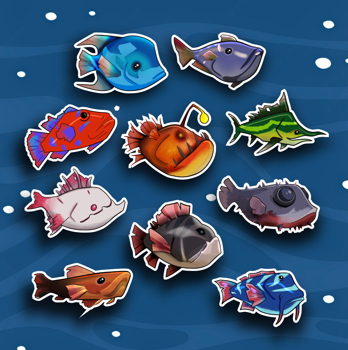 Introducing our exclusive collection of 10 Fish Stickers inspired by the thrilling and adventurous world of the Sea of Thieves!
